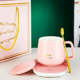 ماگ هیتر حرارتی برقی رنگ صورتی مناسب چای کاپوچینو دمنوش