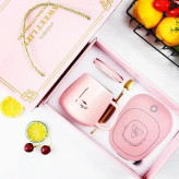 هیتر یا اجاق برقی حرارتی بهمراه لیوان سرامیکی رنگ صورتی و قاشق مناسب استفاده و گرم کردن دمنوش - قهوه- چای، شیر گرم، آبجوش و...