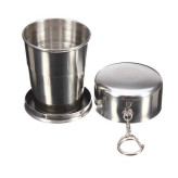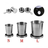 لیوان استیل تاشو دربدار بزرگ(آویز دار)سایز لارج لیوان کمجا لیوان کوهنوردی لیوان جیبی