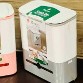 سطل کابینتی چند کاره کاجین همانطور که پیشتر ذکر شد درب کشویی با قابلیت بسته شدن خودکار دارد و بسیار جای کمی را اشغال میکند. قابلیت نصب آسان بر روی کابینت دارد و دارای محفظه نگهداری از کیسه زباله و دستمال کاغذی میباشد. از قسمت جلو دستمال خارج میشود و از قسمت زیرین کیسه زباله خارج میشود .طراحی بسیار زیبا و مدرنی دارد. بدنه این محصول از پلاستیک با کیفیت میباشد و درابعاد 30 در 25 سانتی متر و در ظرفیت 9 لیترطراحی و تولید شده است