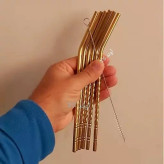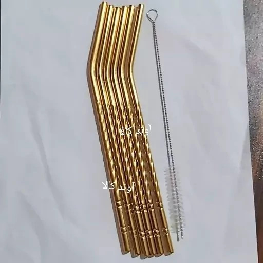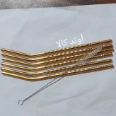 نی شربت استیل طرح پیچی همراه فرچه شستشو (طلایی)