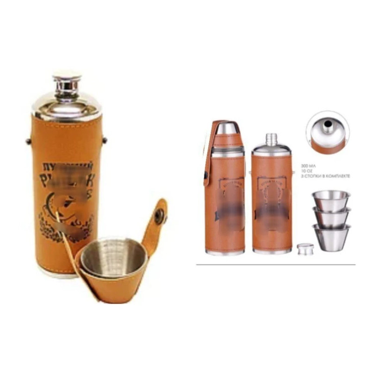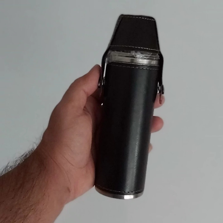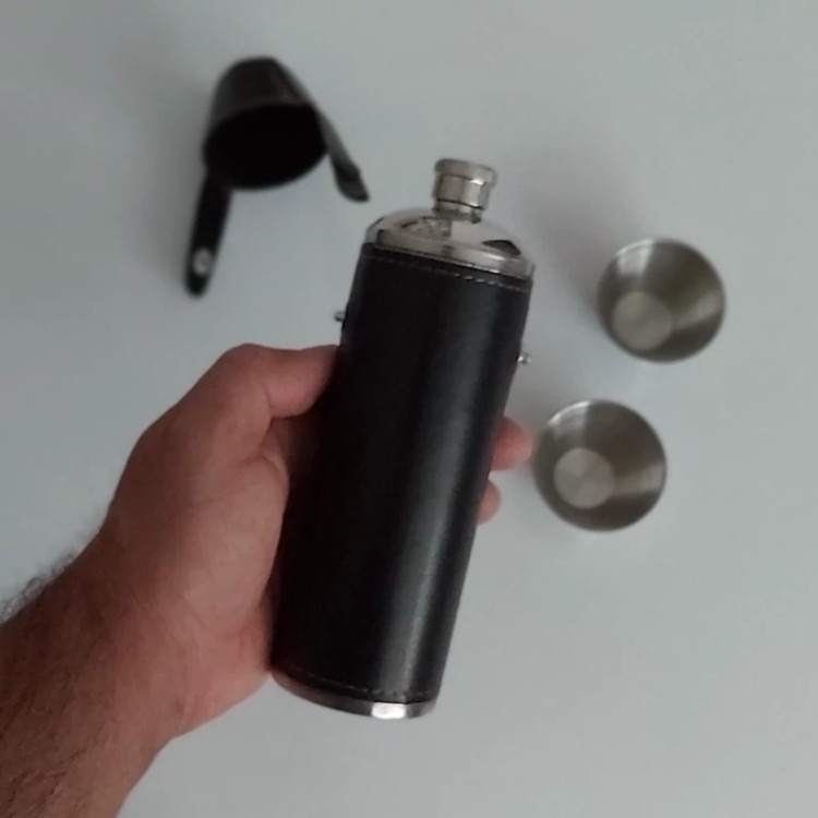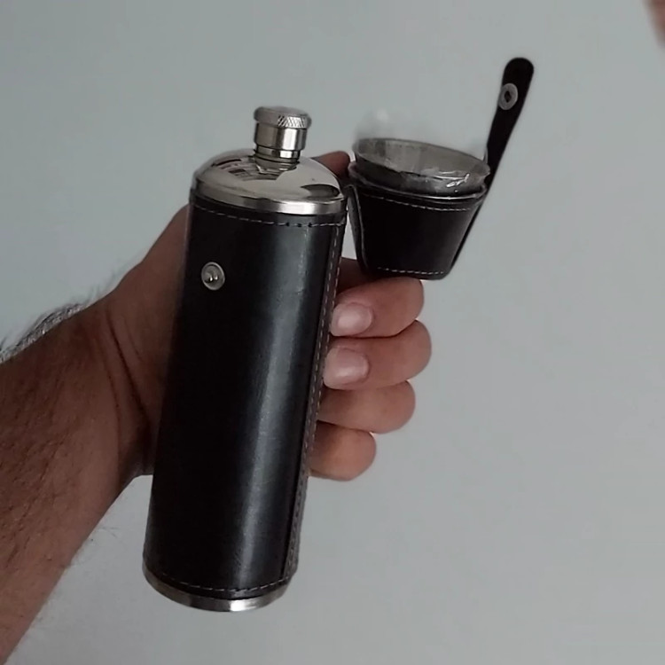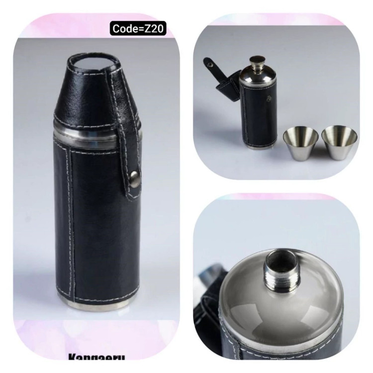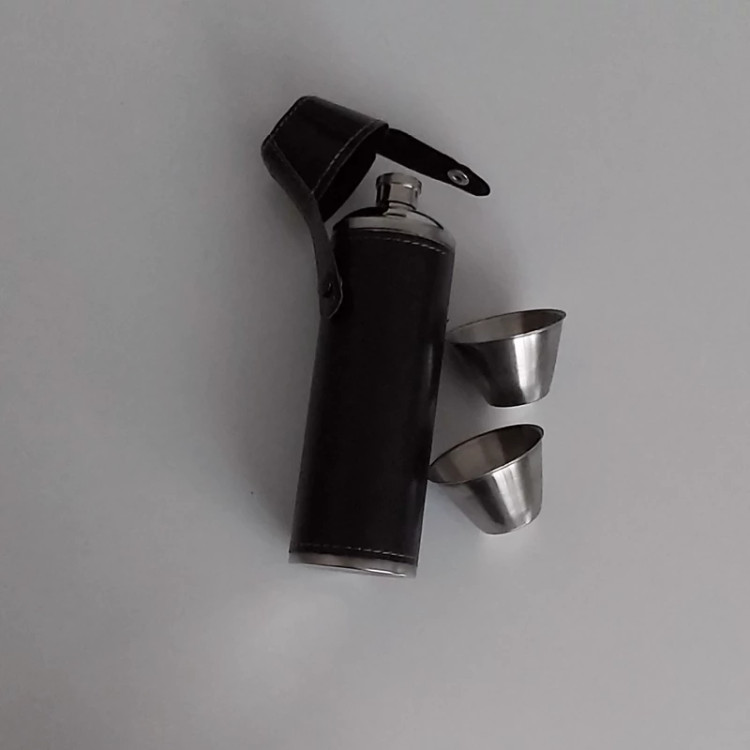 2عدد شات کوچک استیل همراه بطری استیل با روکش چرم مصنوعی و با کیفیت