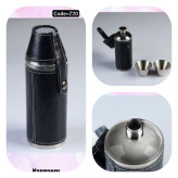قمقمه و شات کوچک 2عدد استیل با کیف مخصوص جیبی مسافرتی(شات قهوه نیم لیوان کوچک همراه بطری ) با روکش چرم مصنوعی