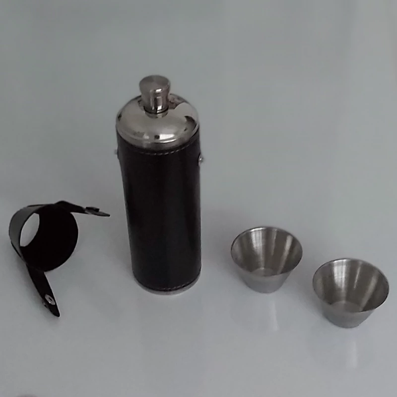 2عدد شات کوچک استیل همراه بطری استیل با روکش چرم مصنوعی و با کیفیت
