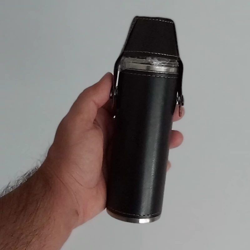 قمقمه و شات کوچک 2عدد استیل با کیف مخصوص جیبی مسافرتی(شات قهوه نیم لیوان کوچک همراه بطری ) با روکش چرم مصنوعی