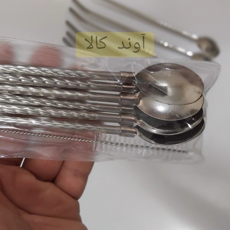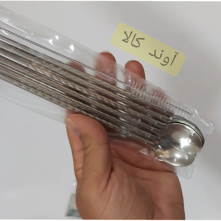 قاشق استیل نی دار ❌همراه فرچه❌ هربسته 6 عدد