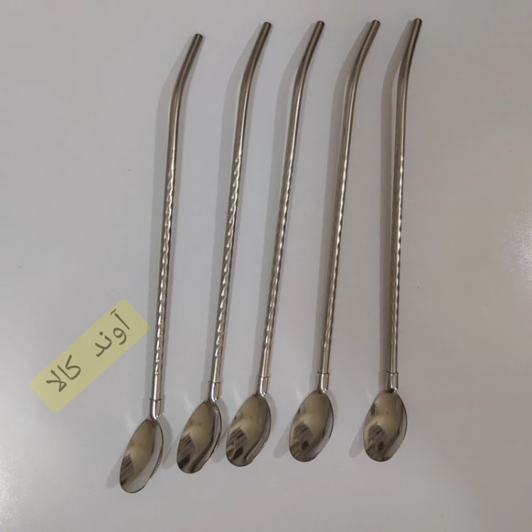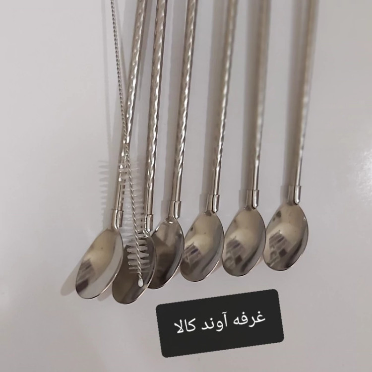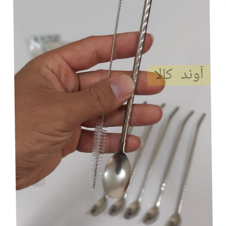 قاشق نی دار شربت و نوشیدنی فرچه دار طرح پیچی( 6 عدد) رنگ استیل با فرچه شست و شو