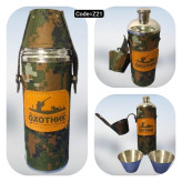 قمقمه و شات کوچک 2عدد استیل با کیف مخصوص ارتشی جیبی مسافرتی(شات قهوه نیم لیوان کوچک همراه بطری ) با روکش چرم مصنوعی