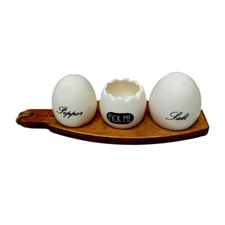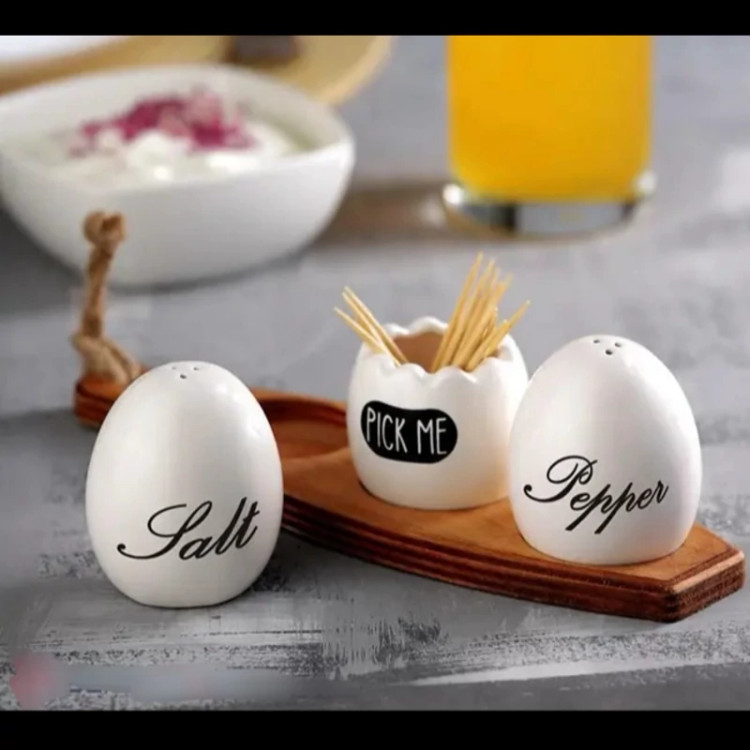 این ست نمک و فلفل پاش تکست شامل 2 عدد نمک پاش، یک عدد جای خلال دندان و یک زیره چوبی است جنس زیره چوبی از چوب پلای وود هست قابل شستشو و مقاوم ست نمکپاش و جا خلالی تکست از جنس سرامیک سفید رنگ نمکدان، فلفل پاش و جا خلالی مدل تخم مرغی طرح تکست به همراه استند نگهدارنده مستطیل چوبی مناسب برای نگهداری و سرو انواع ادویه و نمک قابل شستشو در ماشین ظرفشویی و با دست ارتفاع نمک پاش 5 سانت طول زیره چوبی 18 سانت