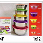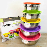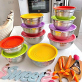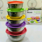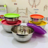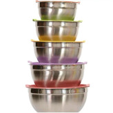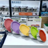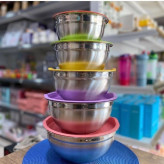 لگن استیل 5تایی درب رنگی استیل ضدزنگ و درب سیلیکون(کاسه درب دار)