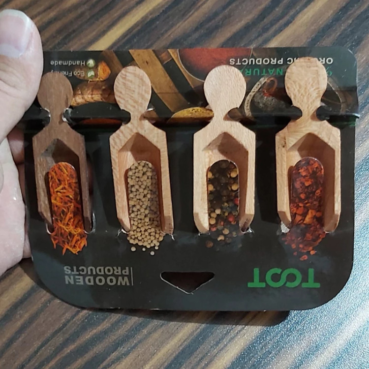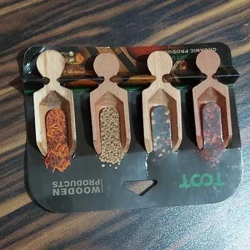 سرطاس پیمانه چوبی کوچک 7cm تخت نصفه (پیمانه ادویه)بسته 4 تایی قاشق ادویه