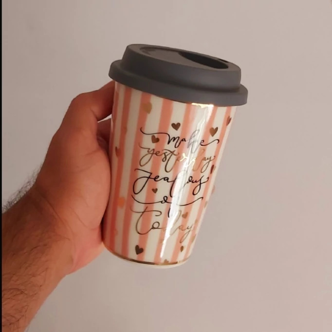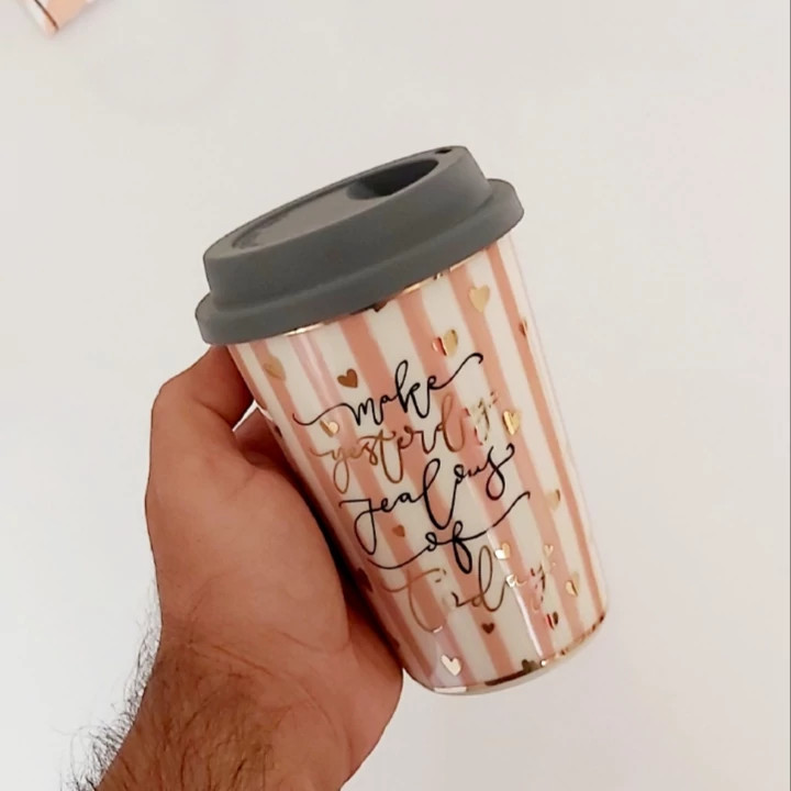 ماگ فانتزی لیوان راسل درب سیلیکونی برند راسل آلمان(تراول ماگ سرامیک بالعاب با کیفیت)ماگ شخصی تکی