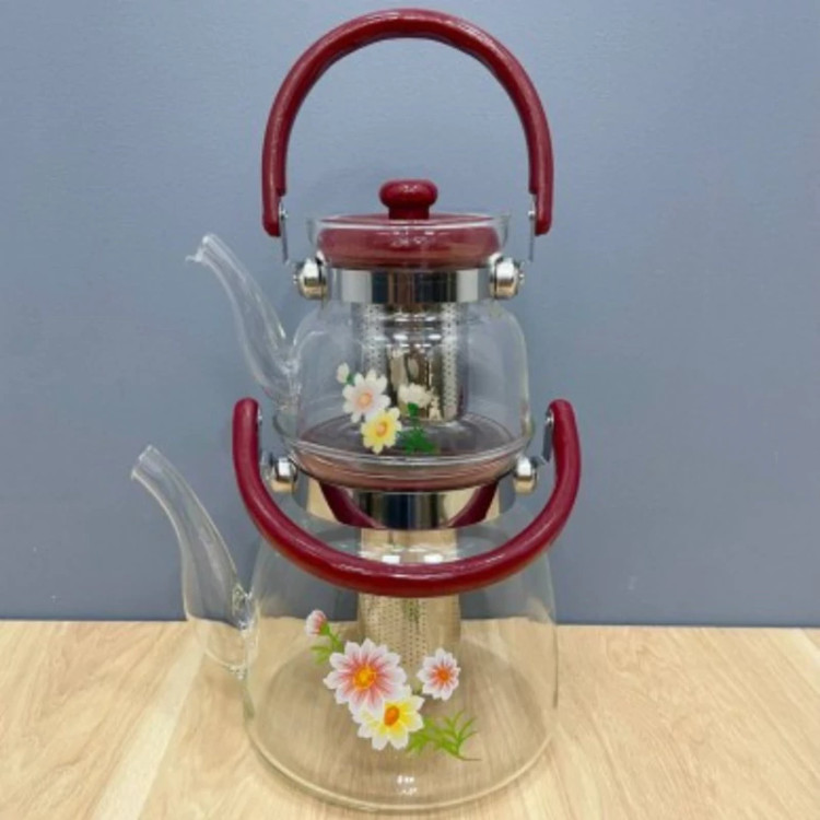 کتری قوری شعله مستقیم پیرکس (کتری2200میلی لیتر قوری 600 میلی لیتر) حرارت مستقیم