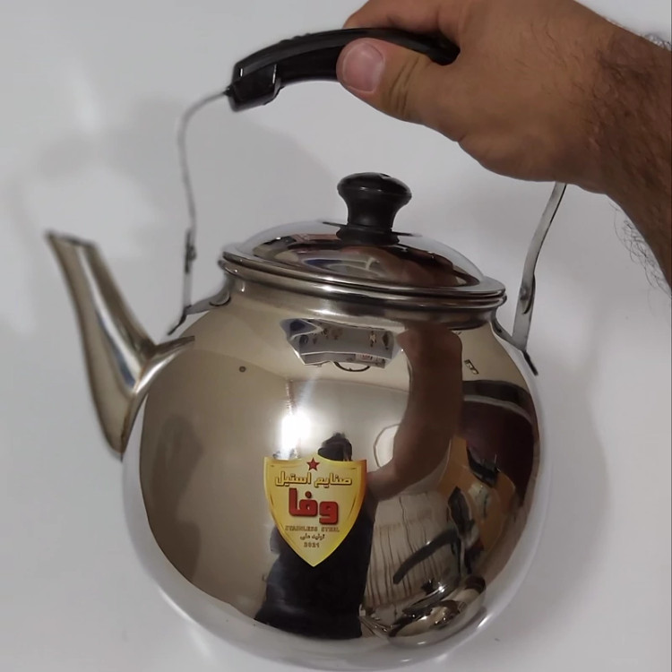 کتری استیل 3 لیتری استیل نگیر وفا(قوری 3 لیتر واقعی) دسته بالا طرح خمره ای