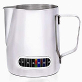 پیچر شیر دماسنج دار 350 میلی لیتری ( thermometer Pitcher ) یکی از لوازم جانبی مورد نیاز برای هر باریستای حرفه ای است. پیچر به همان ظرف مخصوص تهیه کف شیر، گفته میشود که جهت استفاده، در زیر نازل بخار دستگاههای اسپرسو ساز طراحی شده است. یکی از خصوصیت های منحصر به فرد این پیچر وجود دماسنج بر روی بدنهی پیچر است به صورتی که با تغییر دمای مایع درون ظرف ،دمای موجود را با تغییر رنگ درجه موجود ، مشخص میکند این پیچر از جنس استیل ضد زنگ است و گنجایش آن 350 میلی لیتر است. از این ظرف با طراحی دستهی محکم، پیچری خوش دست برای لاته آرت به شمار میرود