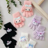 دستکش کرومی ملودی کیتی سینامورول پوم پوم کیوت فانتزی جنس پشمی تدی پشمالویی نرم و گرم زمستانه لطیف دست کش نیم انگشت