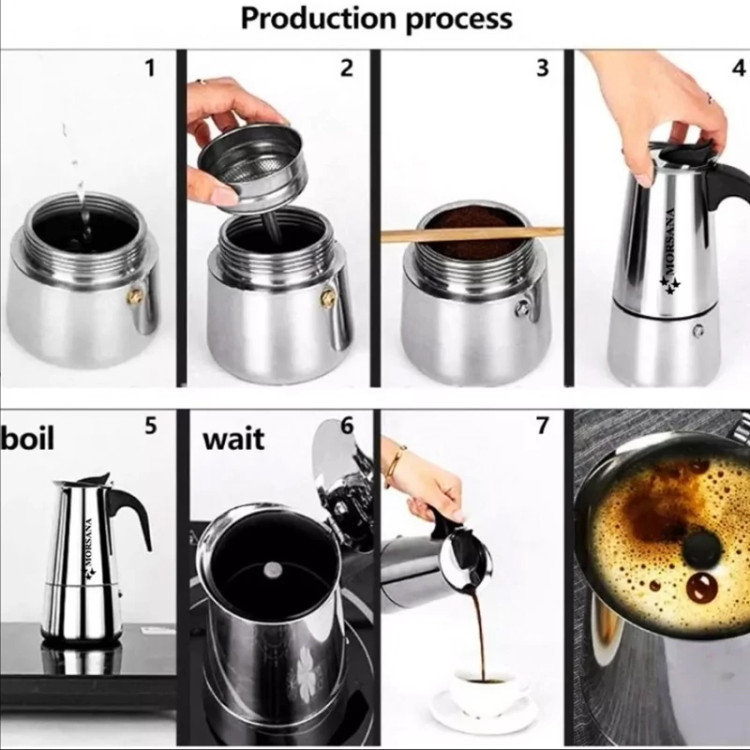 موکاپات 6 کاپ استیل اسپرسو ساز روگازی(قهوه جوش دستی)اسپرسو میکرEspresso maker موکاپات 6نفره