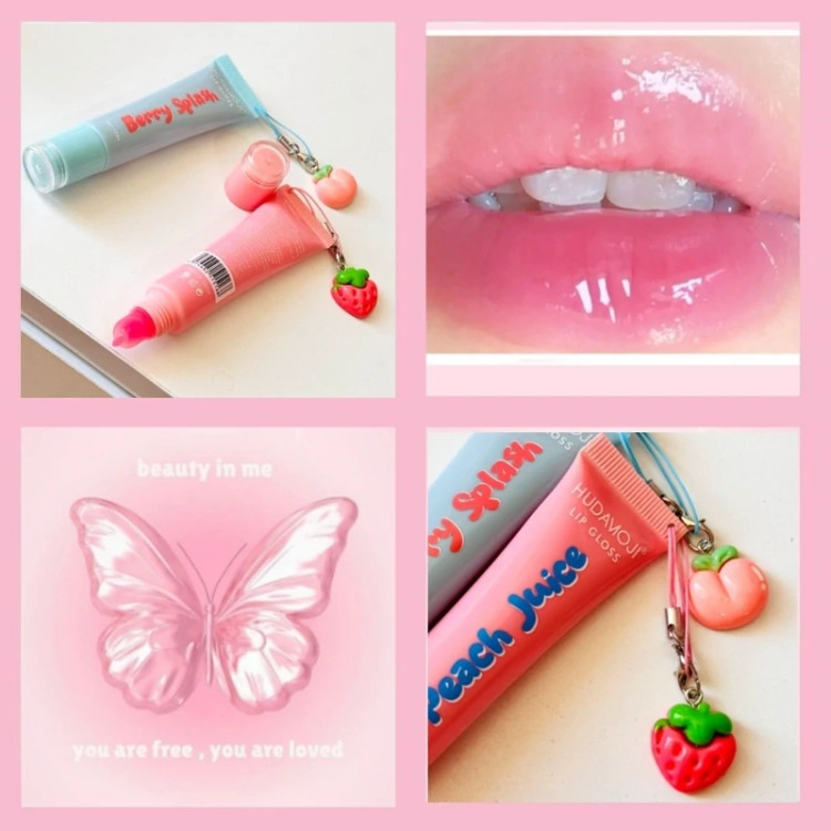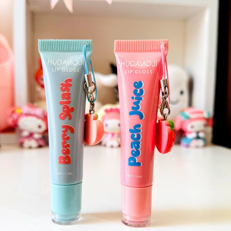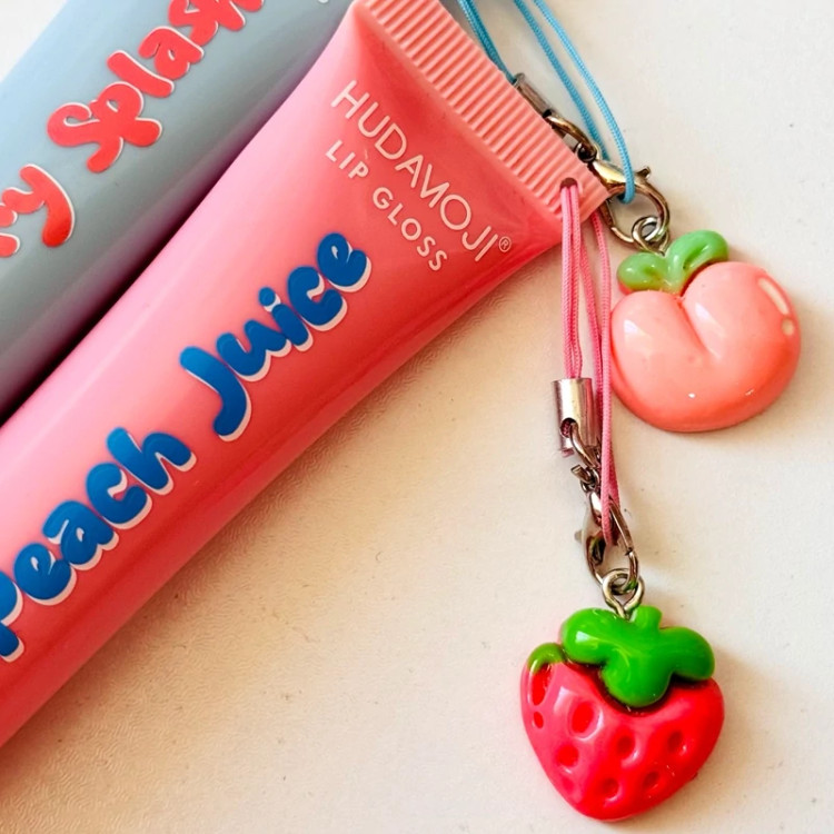 بالم لب برق لب مایع توت فرنگی هلو دارای آویز چارم دست کلید کیوت فانتزی پینترستی گوگولی خوشبو خوشمزه