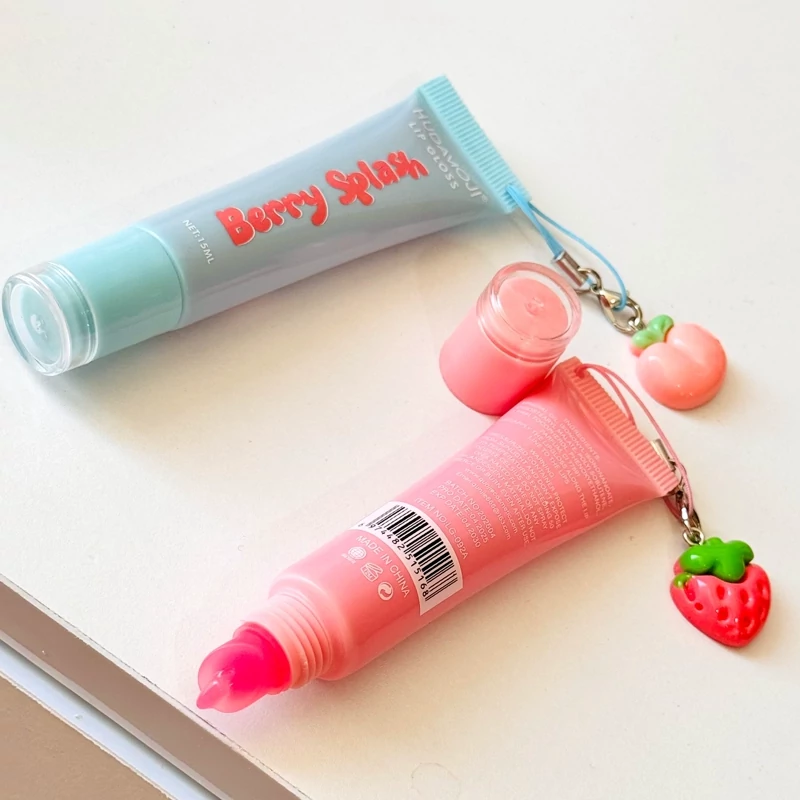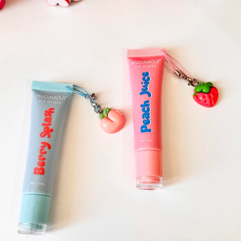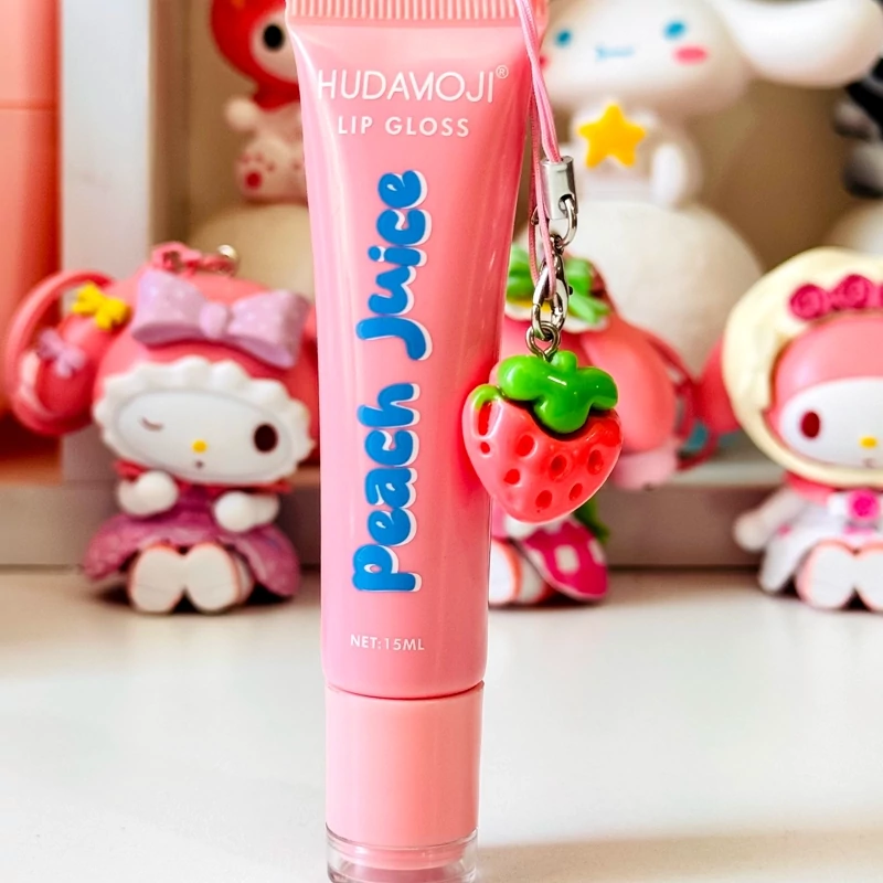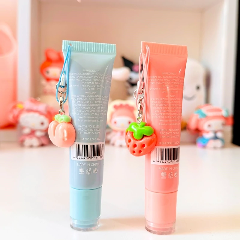 بالم لب برق لب مایع توت فرنگی هلو دارای آویز چارم دست کلید کیوت فانتزی پینترستی گوگولی خوشبو خوشمزه