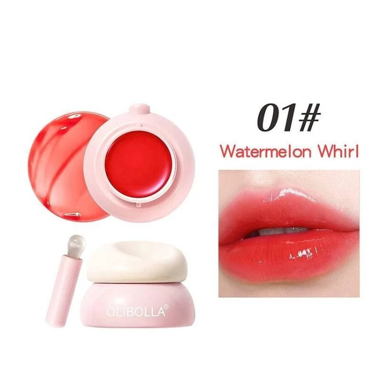 رژ لب لیپگلاس خیس مربا لب دوپ کره ای همراه اپلیکاتور ترمیم کننده نرم کننده لب فانتزی کیوت کادو تولد باکس هدیه بالم لب