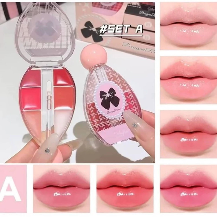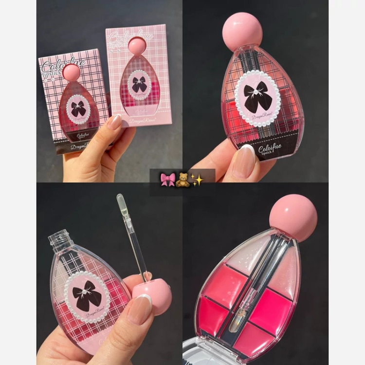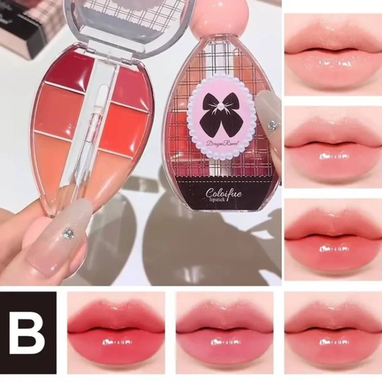 لاک لب برق لب شیشه ای کریستالی خیس پاپیونی پالت 6 رنگ بالم لب خیس کره ای خوشبو نرم کننده و آبرسان لبها