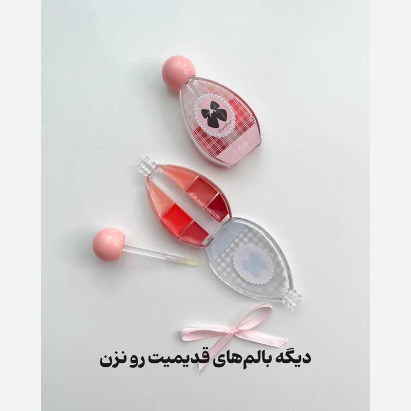 لاک لب برق لب شیشه ای کریستالی خیس پاپیونی پالت 6 رنگ بالم لب خیس کره ای خوشبو نرم کننده و آبرسان لبها