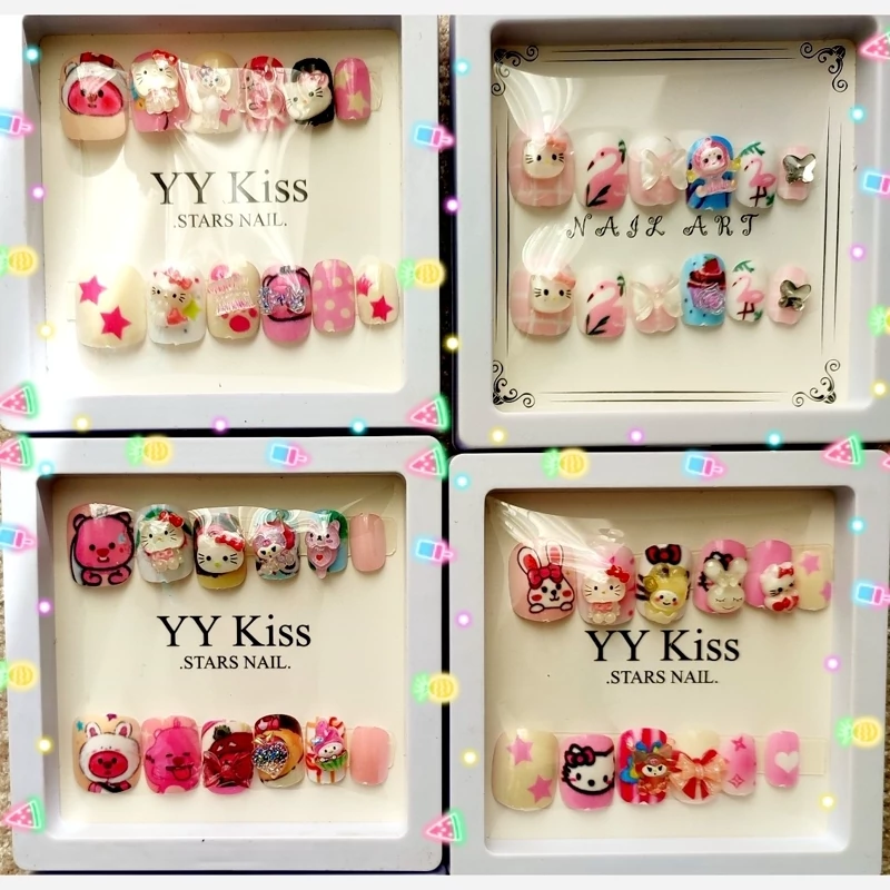 ناخن مصنوعی کره ای خاص کرومی ملودی سینامورول کیتی کیفیت عالی همراه چسب دوبر ناخن تزیین شده پیکسل گوگولی پینترستی