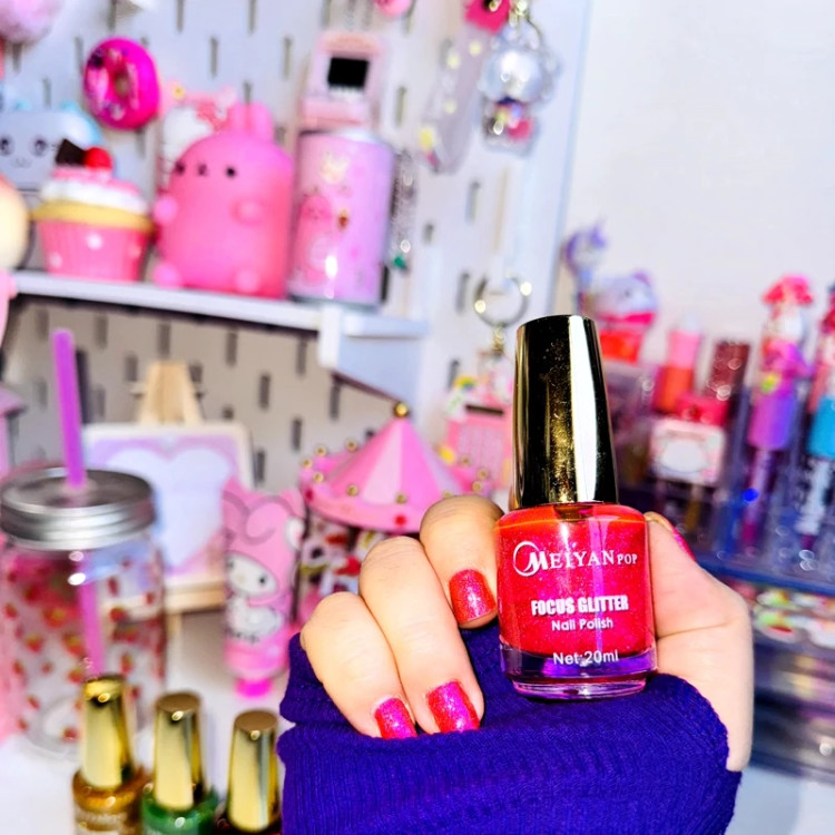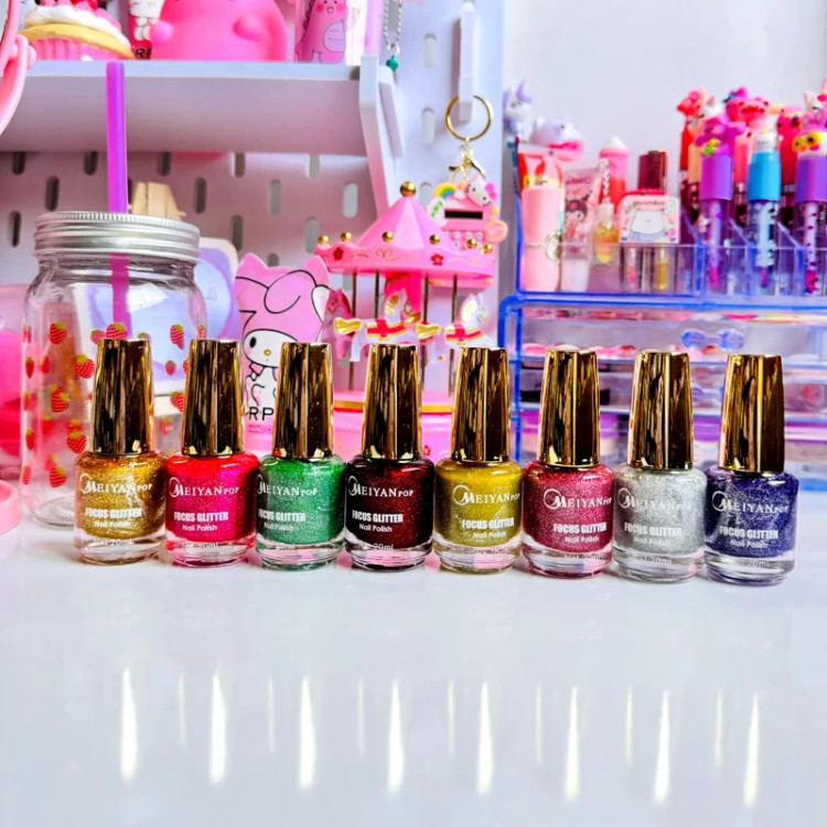لاک بزرگ برق ناخن گلایتری شاین دار اکلیلی فقط رنگ طلایی زرد براق فانتزی تابستانه کیوت دخترانه فوق العاده لاکچری
