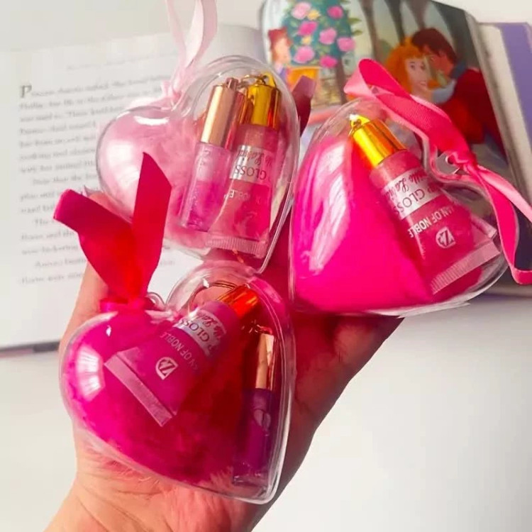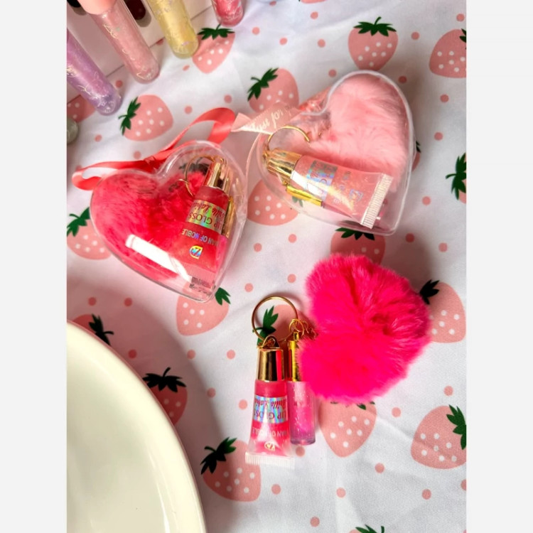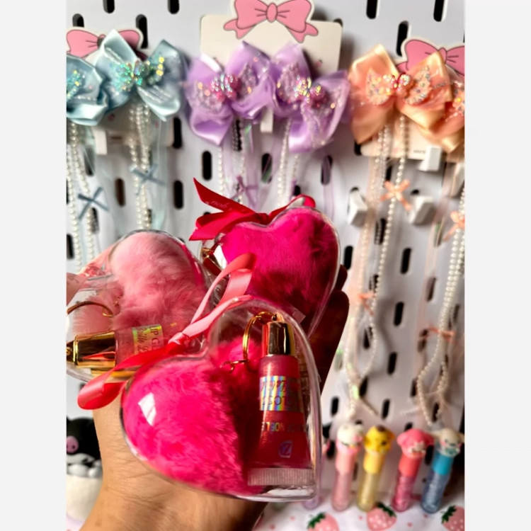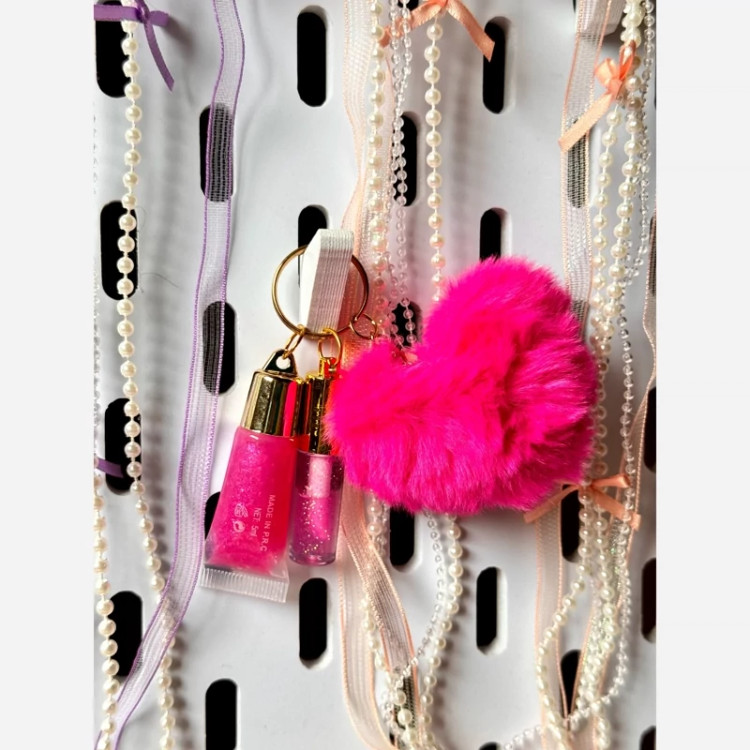 آبرسان بالم لب برق لب پک قلبی فانتزی کیوت برق لب آویز دست کلید قلب پشمالویی پولیشی صورتی مناسب کادو هدیه تولد پینترستی