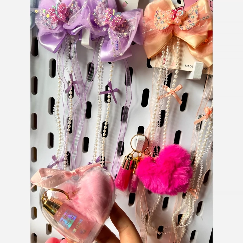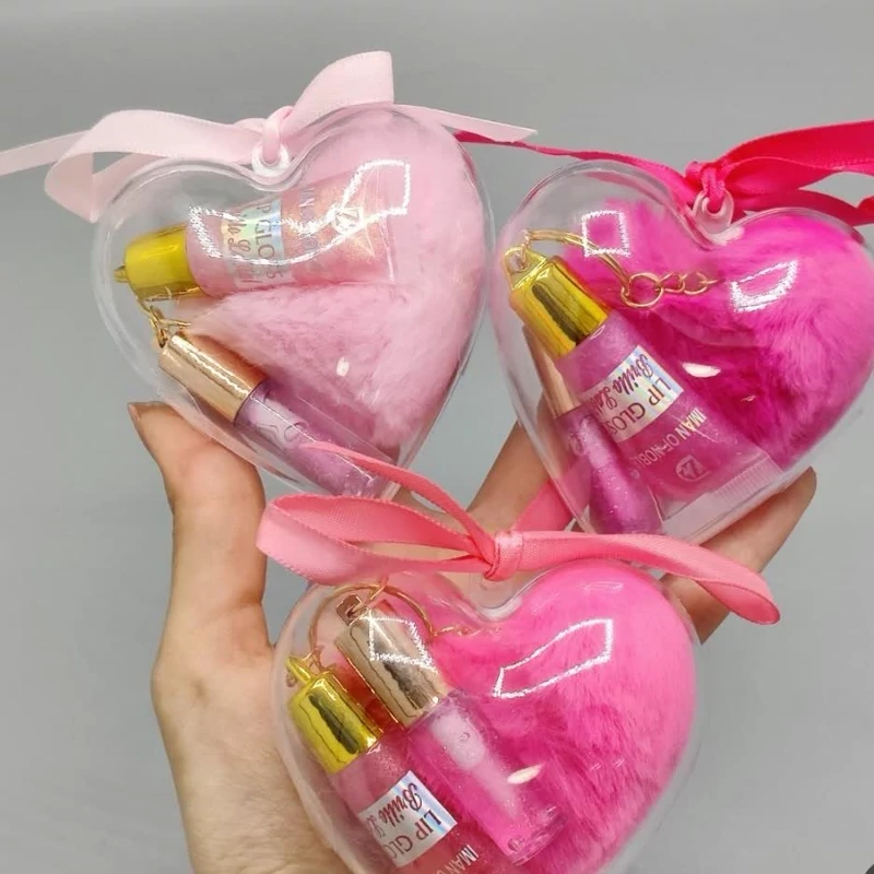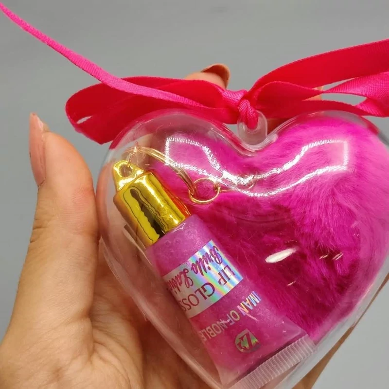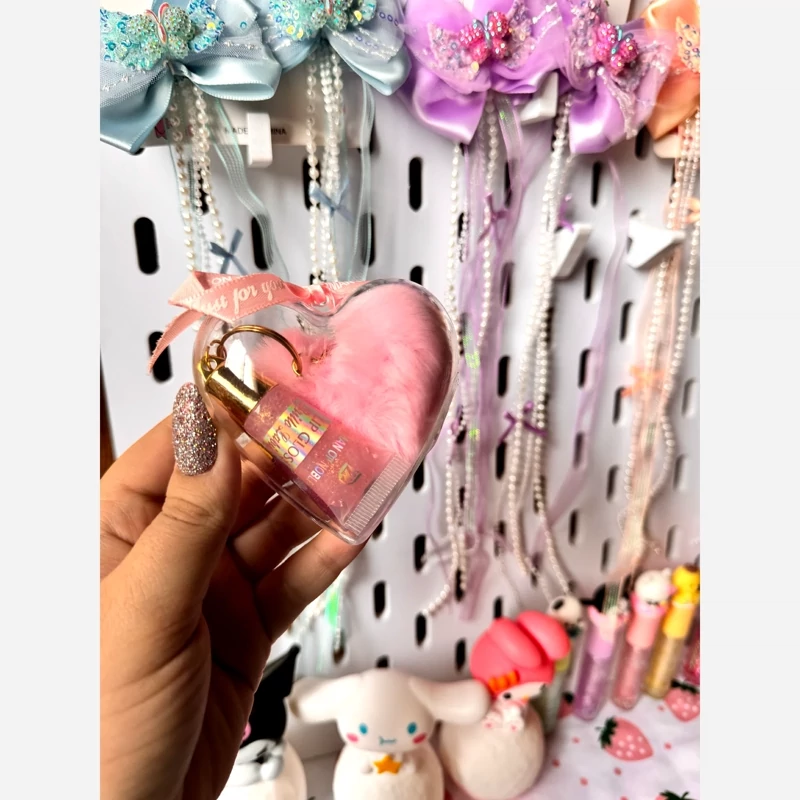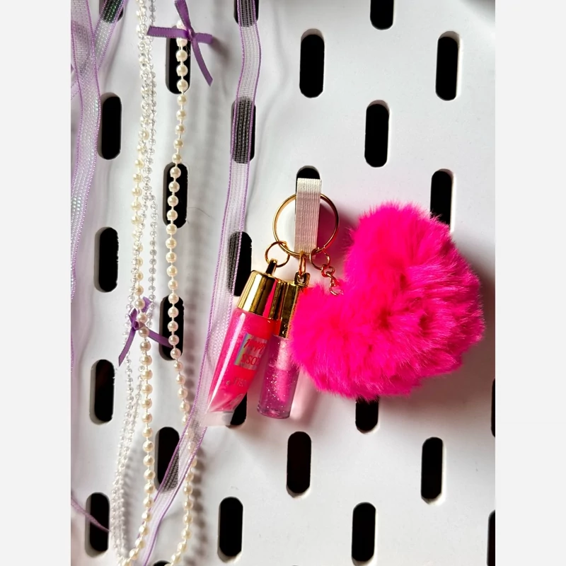 آبرسان بالم لب برق لب پک قلبی فانتزی کیوت برق لب آویز دست کلید قلب پشمالویی پولیشی صورتی مناسب کادو هدیه تولد پینترستی