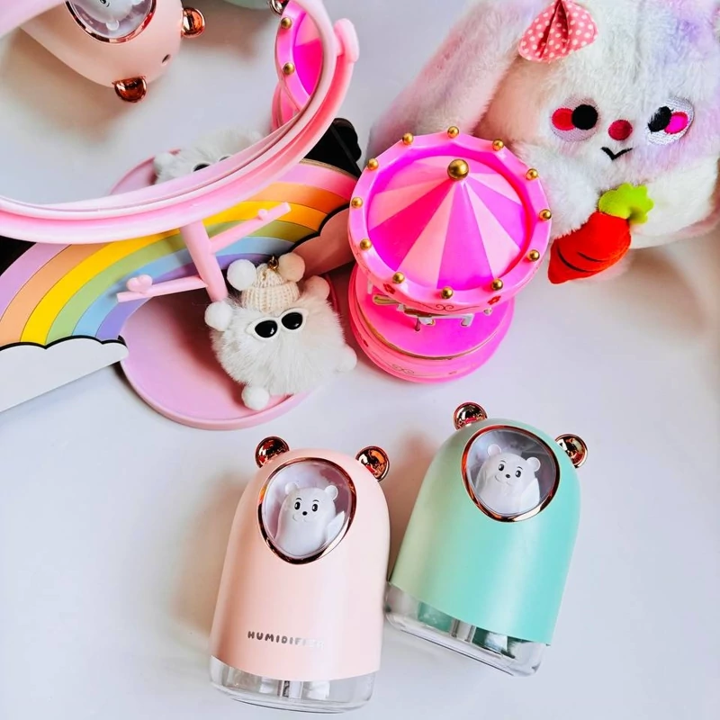 دستگاه بخور سرد خرسی رومیزی فانتزی عروسکی چراغدار نور ال ای دی تهویه هوا آبرسان محیط و شادابی پوست و نشاط بدن