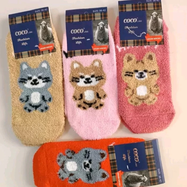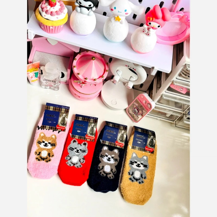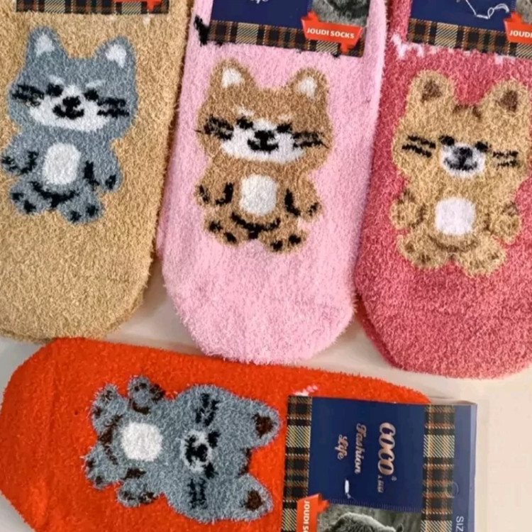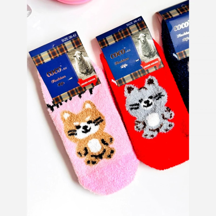 جوراب پشمی پیشی کیوت گربه ای بافت نرم گرم فانتزی طرح کیوت تدی پاپوش زمستانه پشمالویی مناسب فصل سرد گرم کننده قوی