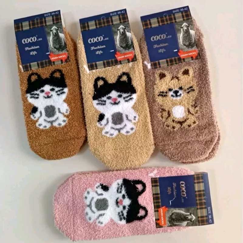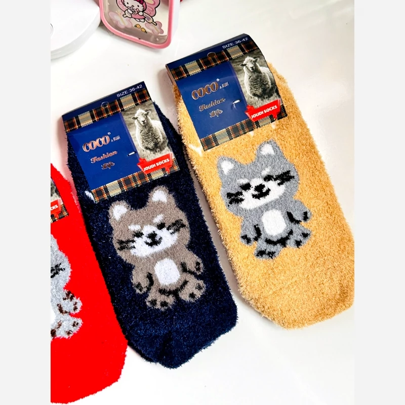 جوراب پشمی پیشی کیوت گربه ای بافت نرم گرم فانتزی طرح کیوت تدی پاپوش زمستانه پشمالویی مناسب فصل سرد گرم کننده قوی