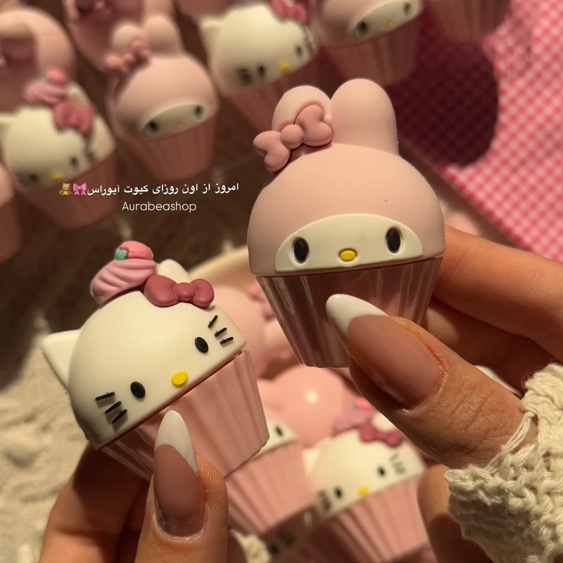 بالم لب کاپ کیک کرومی کیتی ملودی فانتزی کیوت پینترستی سانریو آبرسان لب شفاف کننده لب ضد خشکی و ترک فیگور ملودی کیتی کر