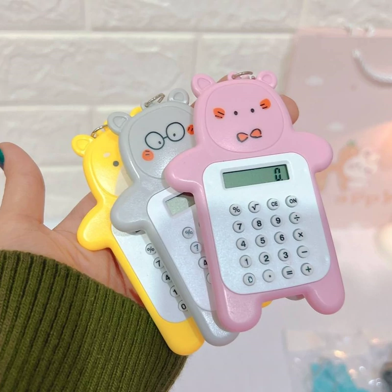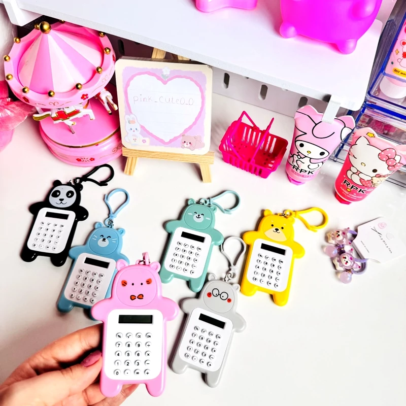ماشین حساب آویز دار خرسی رنگ شاد و فانتزی کیوت برای کادو هدیه لوازم التحریر گوگولی