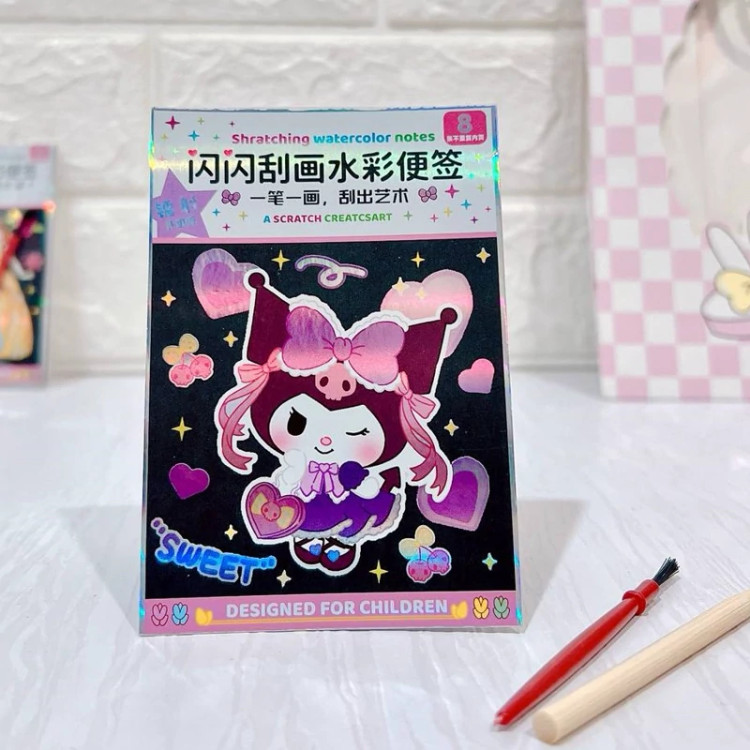 دفترچه آبرنگی کرومی دفترچه ذغالی همراه قلمو لوازم التحریر گوگولی قابل استفاده به عنوان بوک مارک تزیین اتاق