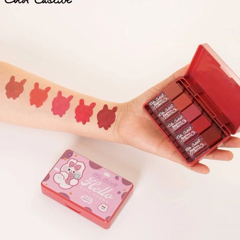 پاستیل لب پک رژ لب خرگوشی توت فرنگی کیوت فانتزی پینترستی کوچک رنگبندی زیبا گوگولی پک پنج عددی