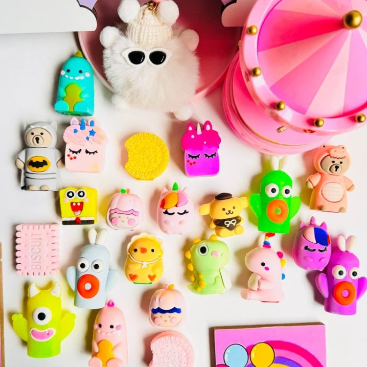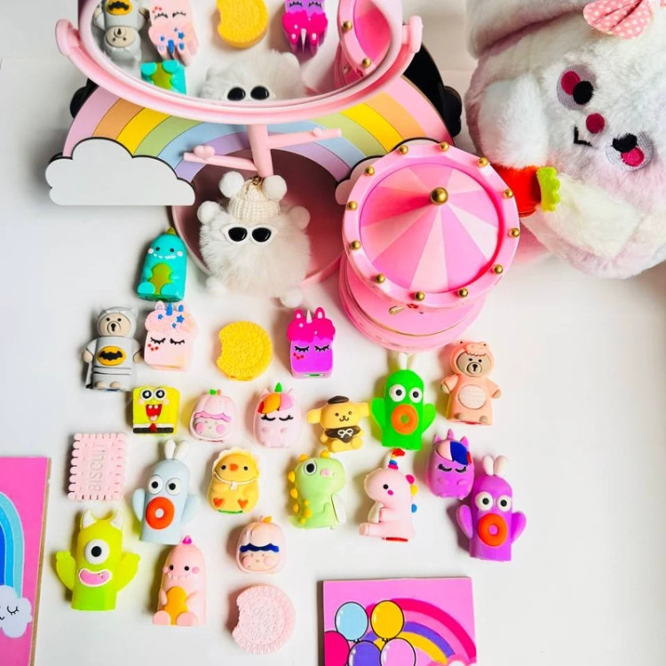 قلم تراش سیلیکونی فانتزی ده رنگ خرگوشی خرسی توپولو کیوت دخترانه دارای رنگ متنوع لوازم التحریر گوگولی