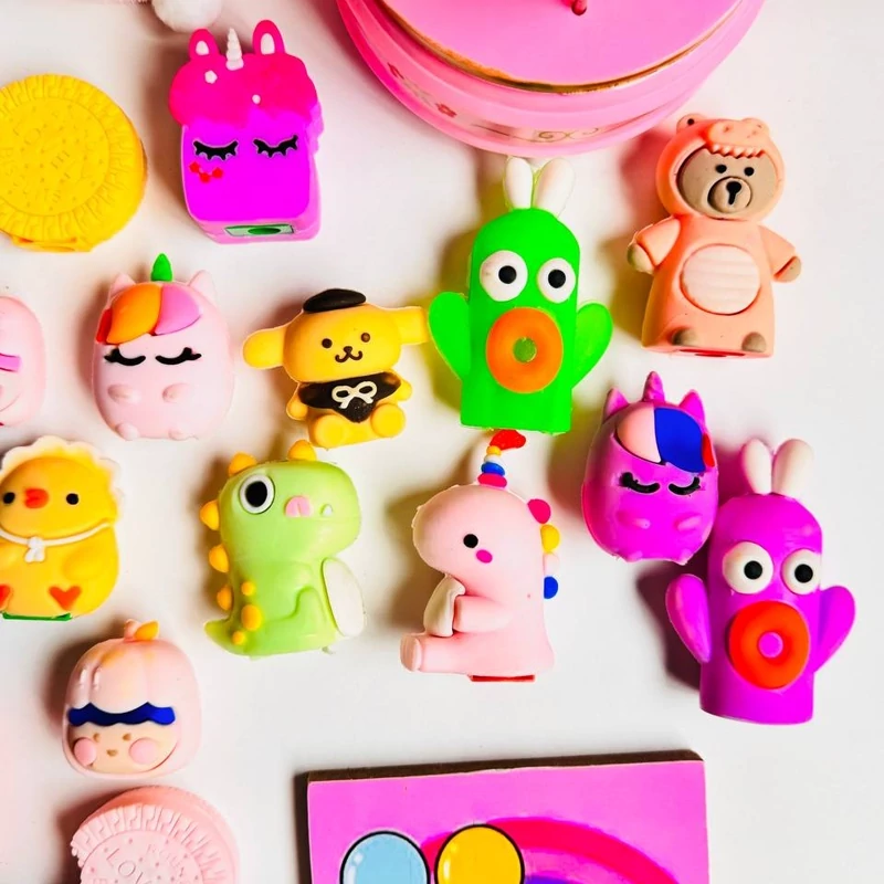 قلم تراش سیلیکونی فانتزی ده رنگ خرگوشی خرسی توپولو کیوت دخترانه دارای رنگ متنوع لوازم التحریر گوگولی