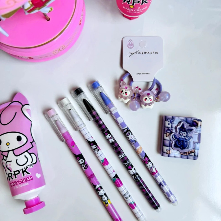 خودکار پاکن دار کیتی کرومی ملودی سینامورول طرح رنگی فانتزی کیوت دخترانه لوازم التحریر گوگولی