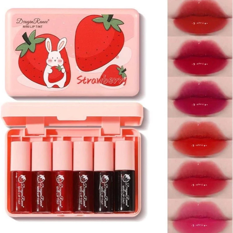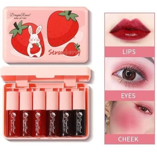تینت لب فانتزی کیوت خرگوشی توت فرنگی پک 6 تایی برپایه اب مات مخملی سبک