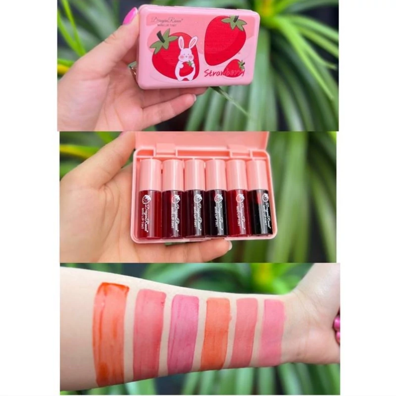 تینت لب فانتزی کیوت خرگوشی توت فرنگی پک 6 تایی برپایه اب مات مخملی سبک