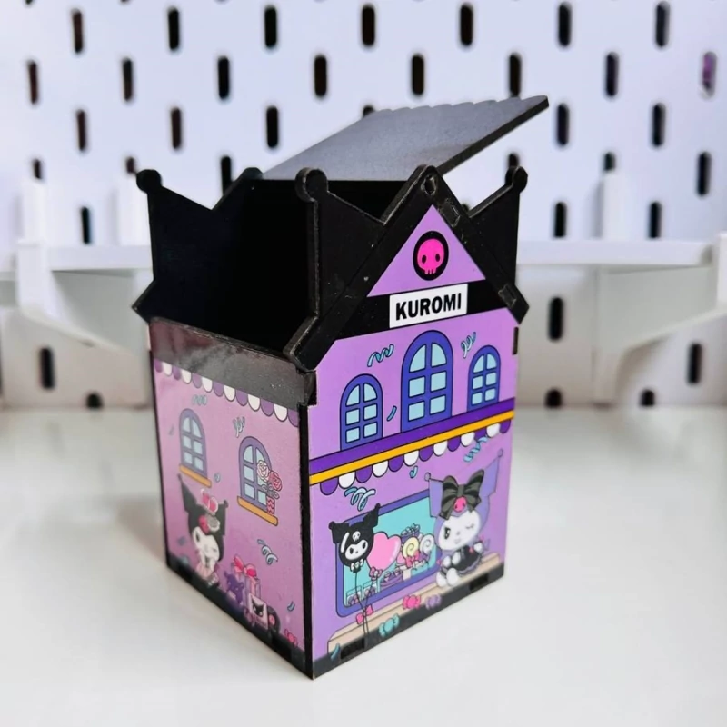 جامدادی رومیزی یا ارگانایز کرومی سطل زیالع طرح کرومی چوبی استند فانتزی کیوت 10 سانتی