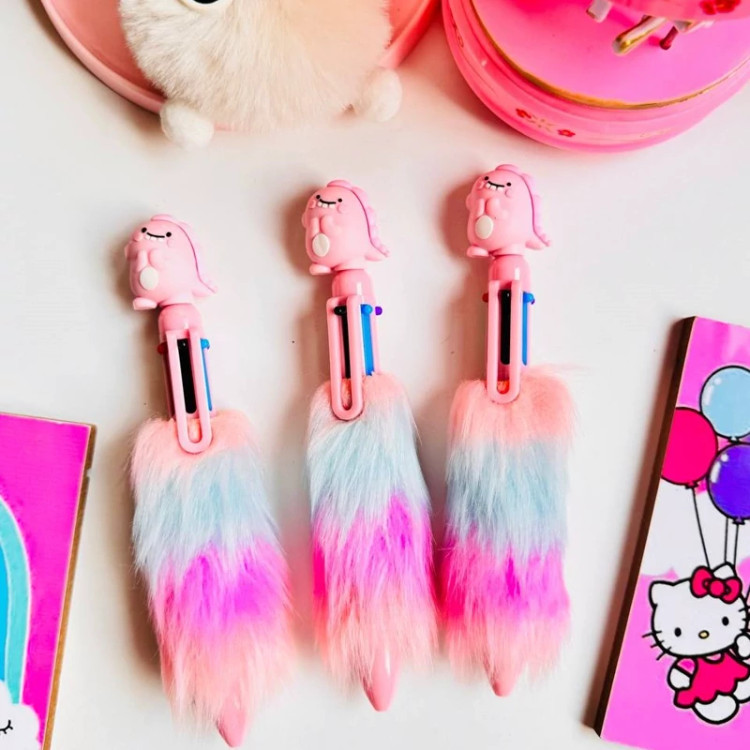 خودکار چند رنگ دایناسوری پشمالویی پشمکی فانتزی کیوت لوازم التحریر گوگولی