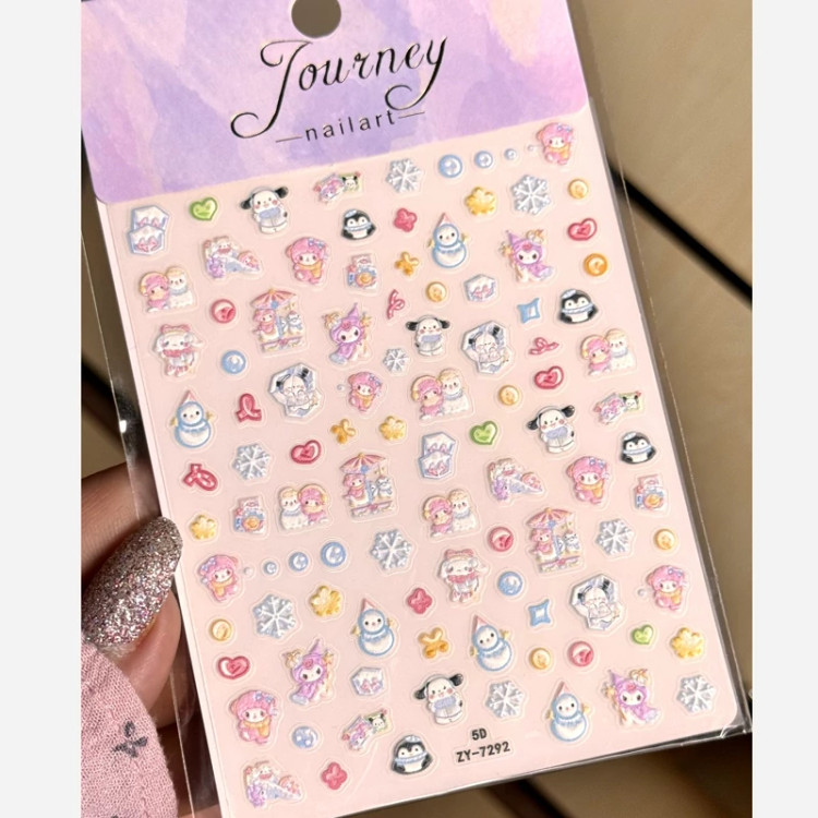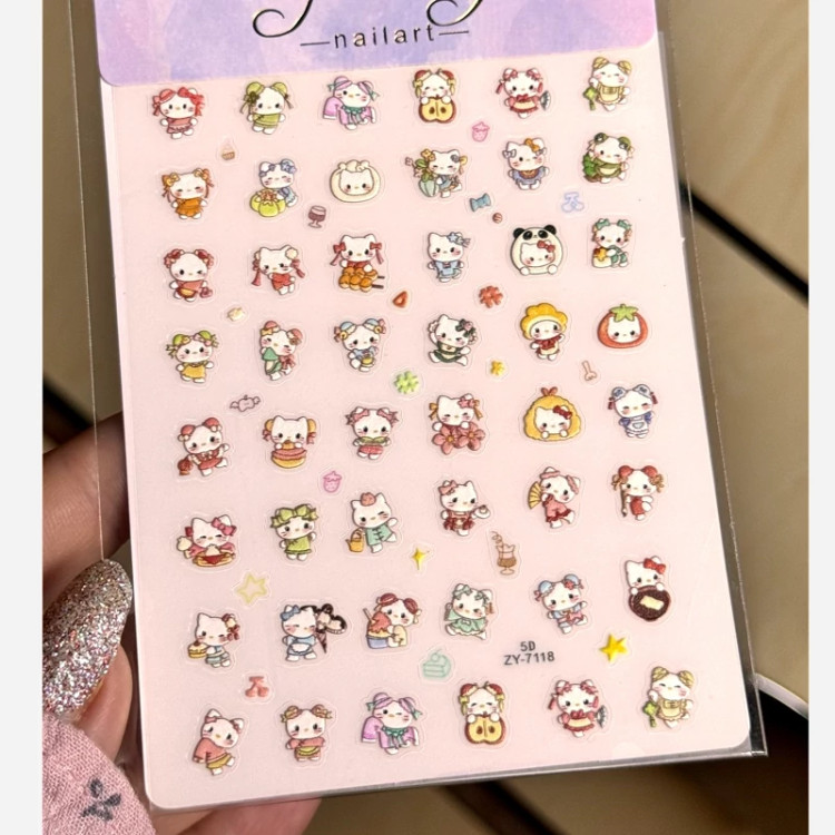 لنز ناخن کرومی ملودی کیتی دیزایین ناخن و قاب گوشی برچسب ناخن سه بعدی کوچک کیوت گوگولی پک تزیین ناخن پینترستی