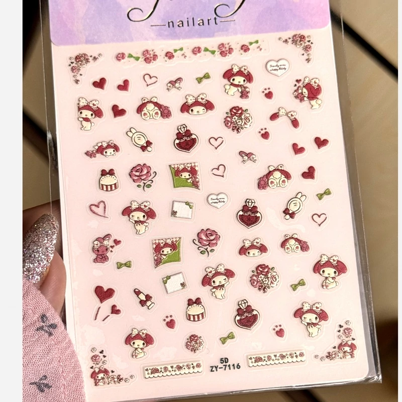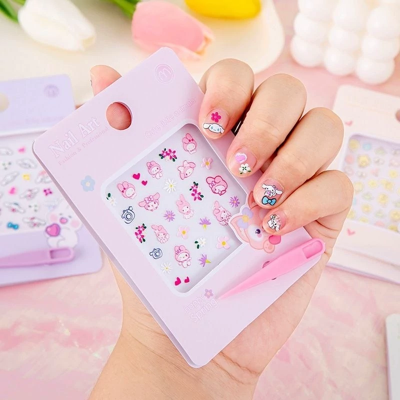 لنز ناخن کرومی ملودی کیتی دیزایین ناخن و قاب گوشی برچسب ناخن سه بعدی کوچک کیوت گوگولی پک تزیین ناخن پینترستی