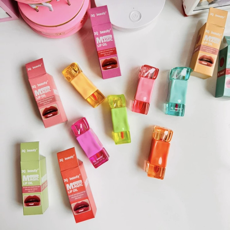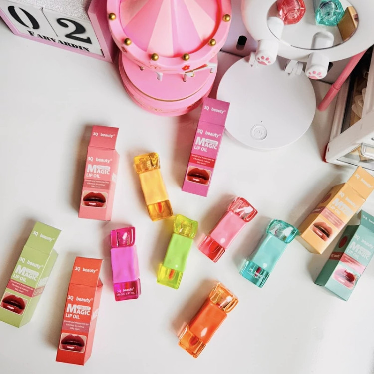 برق لب پینترستی کره ای کیوت فانتزی دلبر صورتی طرح سنگی براق نرم کننده و ابرسان لب