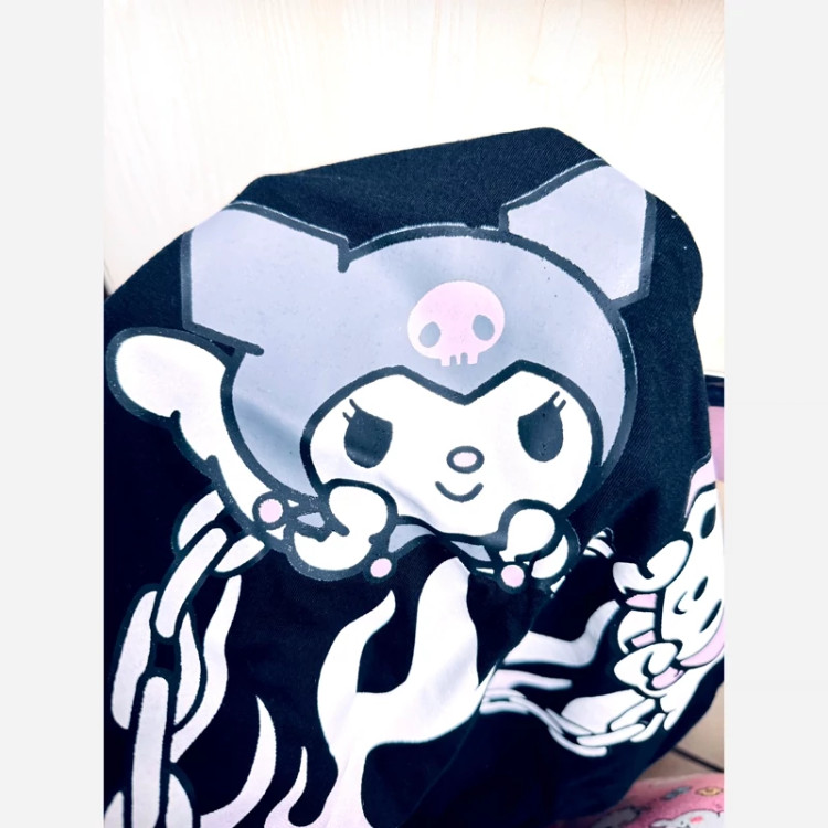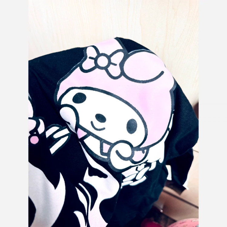 تیشرت مشکی کراپ کرومی ملودی صورتی قلبی فانتزی کیوت مناسب کادو هدیه تولد فری سایز