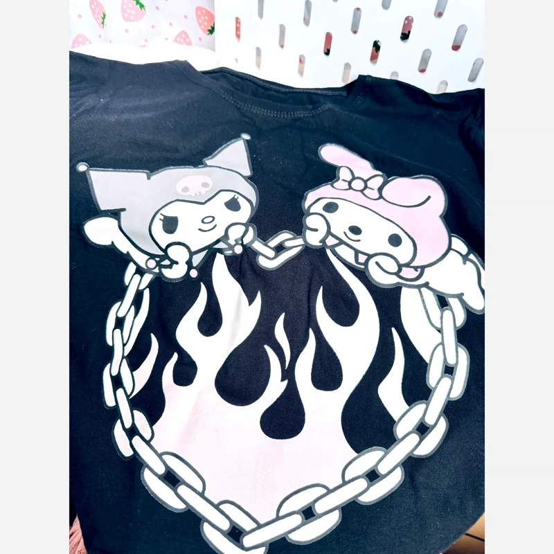 تیشرت مشکی کراپ کرومی ملودی صورتی قلبی فانتزی کیوت مناسب کادو هدیه تولد فری سایز
