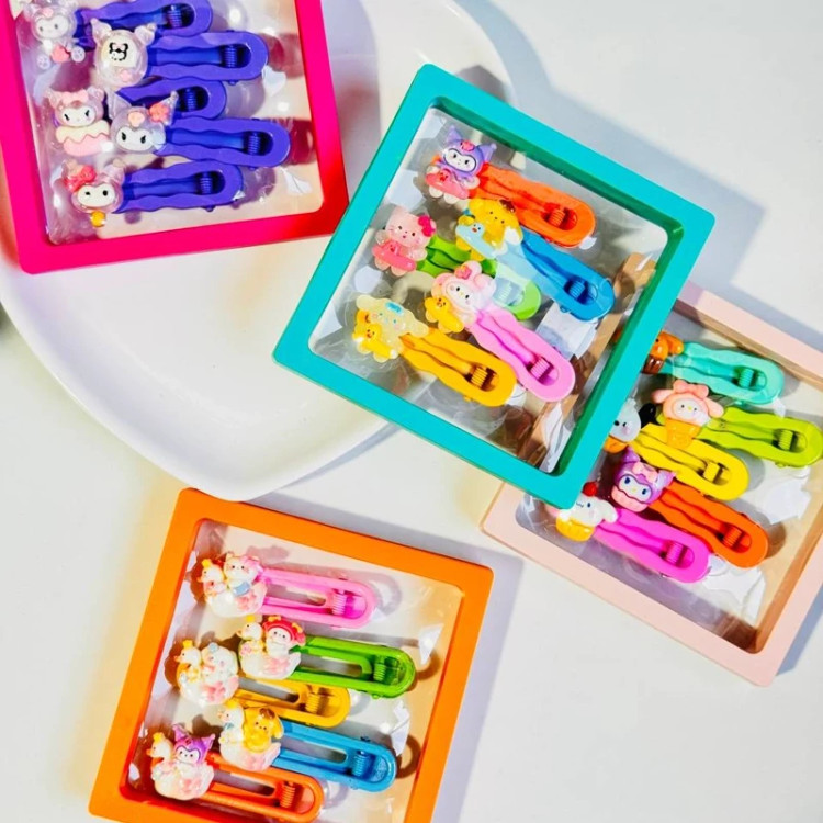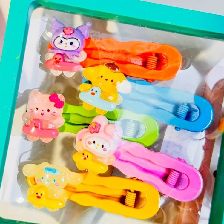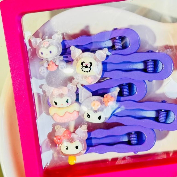 پک گیره مو کادویی انبری کیوت فانتزی کرومی ملودی سینامورول پوم پوم پوچاکو کیتی خاص با جعبه